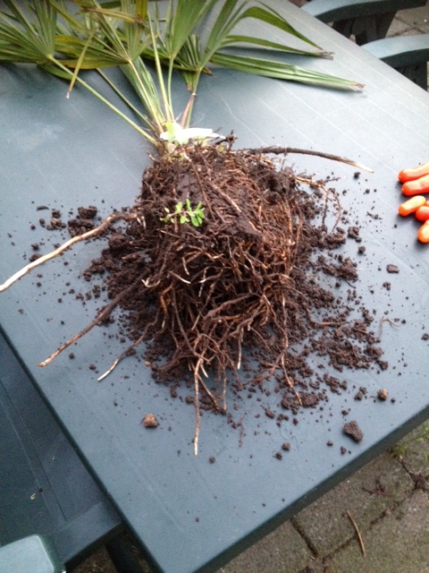 Al een tijdje zijn mijn trachy's aan het sukkelen.. De ene had veel te natte wortels, wortelrot dus. Die snel in een kuip met droge aarde gezet. Hopen dat het goed gaat.