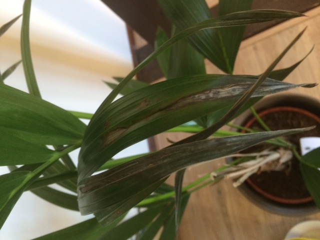 Het kan ook zijn dat de voeding van de potgrond uitgewerkt was. Dat moet met nieuwe potgrond nu beter gaan. Kamerpalmen hebben het hele jaar voeding nodig, omdat ze geen rustperiode kennen.