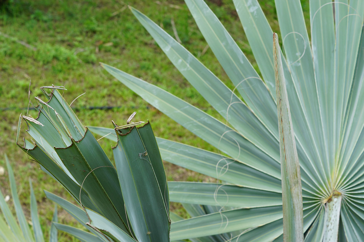 Heeft iemand enig idee wat hier aan de hand is met mijn Bismarck palm? Locatie is Filipijnen. Water is in droge seizoen nog wel eens een probleem. Ik ziet wel wat witte draden op de bladeren die aan spinrag doen denken. Wellicht heeft dit iets te maken met de aangevreten bladeren. Ook splitsen de bladeren zich in het midden (scheuring op nerf). Vorig jaar stond hij er nog prima bij.