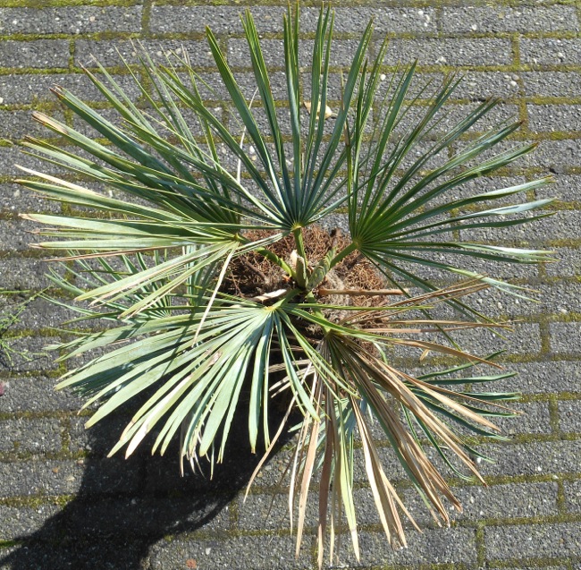 Als je goede potgrond hebt gebruikt, zit daar doorgaans voldoende mest in voor een drietal maanden. Bij aanvang van het nieuw groeiseizoen kun je dan weer mest geven, bijvoorbeeld een topping van traagwerkende organische granulaat mest. Voor palmen e.a. groenblijvende planten is een NPK verhouding 3:1:3 met 3 - 5% magnesium* meest geschikt. Gardenpalms kan 2 soorten bemesting voor palmen leveren, een geleidelijk opneembare korrel en een oplosbare voor het gietwerk. Die juiste NPK verhouding is ook niet zo verschrikkelijk belangrijk, de planten nemen toch alleen op wat ze nodig hebben. Ik heb al zoveel verschillende samenstellingen gebruikt en heb nooit enig verschil waargenomen.