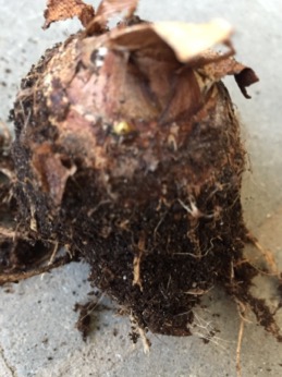 mijn colocasia madeira gaat niet de goede kant op. Ik heb hem al de hele tijd overwinterd gewoon in pot. Dat ging zeer goed tot deze week. Hij vertoonde tekenen van rotting en op 3 dagen tijd is hij helemaal verdwenen. Nu heb ik hem even uit de grond gehaald en zijn knol voelt nog hard aan. Ook zie ik een klein groen puntje uitsteken dus hij geeft nog een teken van leven. Nu is mijn vraag: wat doe ik nu het best? De knol uit de aarde laten en zo droog laten schieten? Of terug in droge aarde planten?