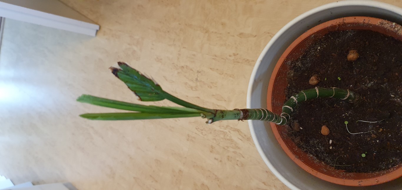 Ik heb een Chamaedorea Metallica, waarvan de nieuwe bladeren al, na korte tijd groen te zijn geweest, opeens lijkt af te sterven. Op deze manier kan de plant geen tijd krijgen om goede stofwisseling te doen en z'n eigen energie voorraad opbouwen.
