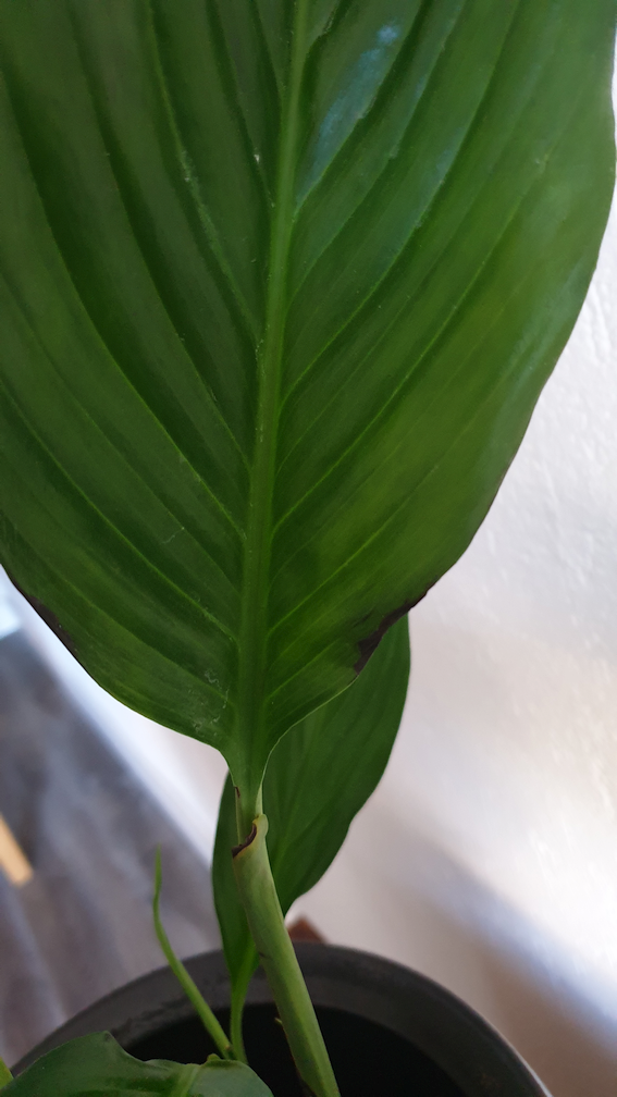 Re: Lepelplant met zwarte randen op het blad
