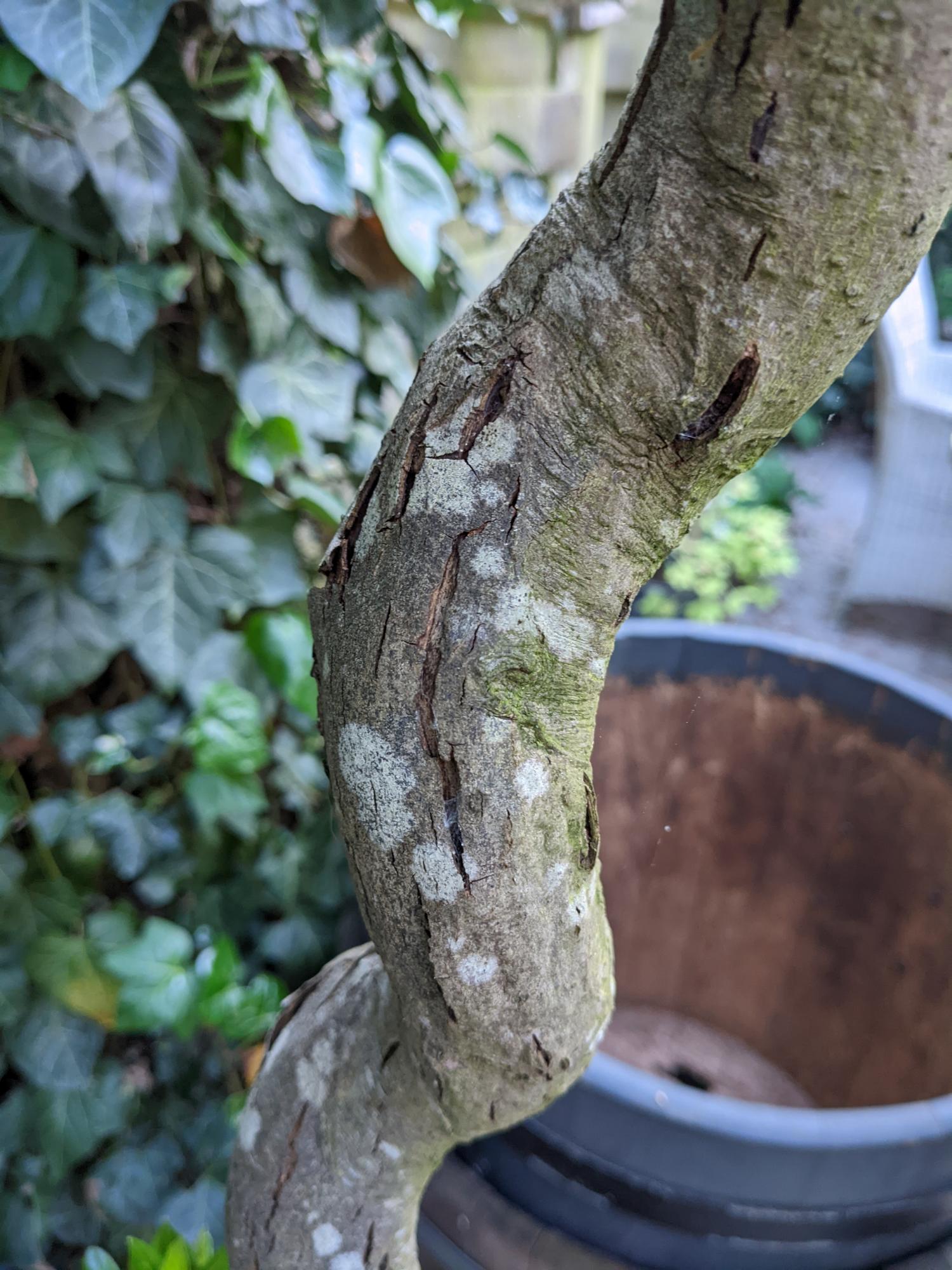 De bast van mijn Laurus nobilis gaat open staan. Iemand een idee wat hiervan de oorzaak is? Een schimmel misschien? Op een goed (of eigenlijk kwaad ) moment laat die bast dan rondom los waardoor de plant dood gaat.
