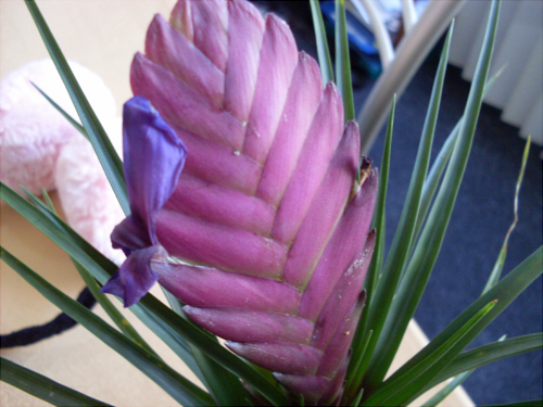 Toen ik zondag naar mijn Tillandsia keek, viel me op dat het uitgekomen bloemetje al slap hing, en de knop al wat bruinig werd.