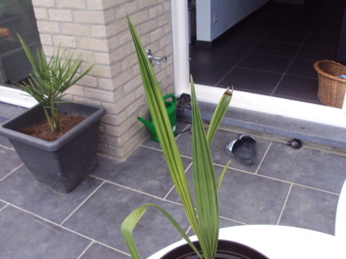 Van deze palm zijn voelen de bladeren heeel erg droog aan, precies karton... en er zijn reeds wat bruine plekken te zien... is dit normaal?