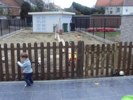 Dit is mijn tuintje in wording... waar de grond omgedaan is, komt een verhoogde border, waar ik de exoten ga plaatsen