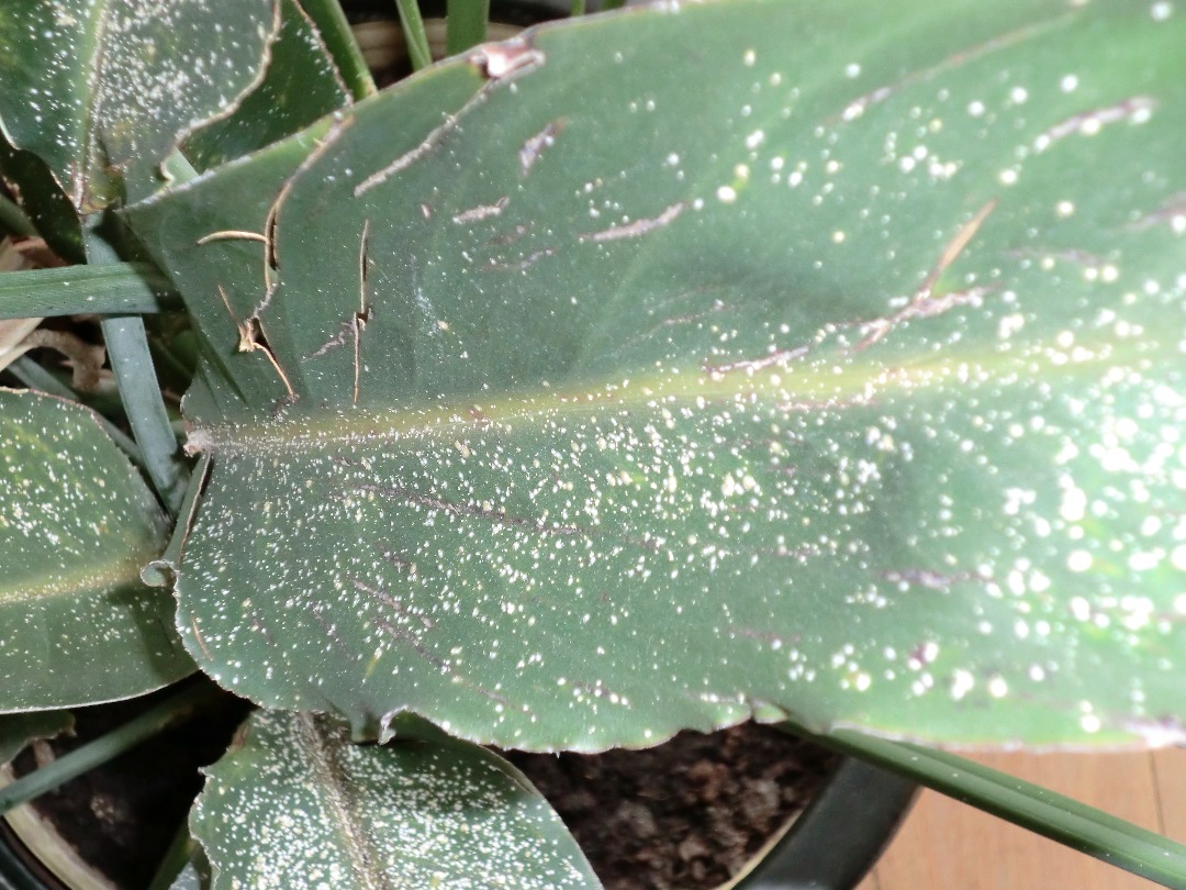 Een half jaartje geleden heb ik een Strelitzia Reginae gekocht. Tijdens de koop zaten er verschillende bloemen in maar die waren binnen de kortste keren uitgebloeid. Vervolgens zie ik niets van bloei terugkomen en lijkt het erop of ie het loodje gaat leggen. De bladeren zitten namelijk onder de witte puntjes. Mijn vorige Strelitzia heeft op dezelfde manier het loodje gelegd. Wat doe ik fout en is de plant nog te redden?