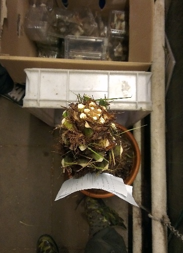 Het is dus een prima optie om uit te proberen als ik het zo lees ;) Dat er geen blad aan zit nu vind ik niet heel erg maar voor de reis met OV is het ideaal ;) Op het etiketje stond de prijs van ruim 47 euro, wat ik veel te veel vind natuurlijk. De kop is beetje scheef maar dat is niet erg want heb al langer een plan om 2 Roebelinii schuin te zetten in een pot zoals Raymond wat ik erg mooi vind.