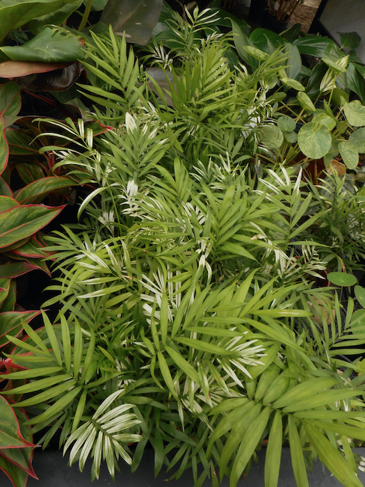 Zonneverbranding by Chamaedorea lijkt hier verdacht veel op... ik ben er niet 100% zeker van dat die een variegated plant is.