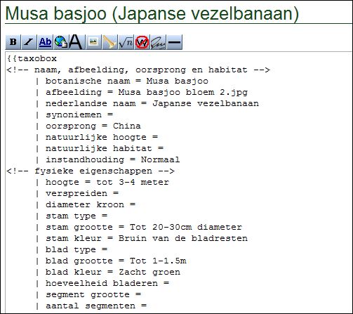 Bovenaan de tekst editor zie je de taxobox. Dit zijn alle regels die er als volgt uitzien: