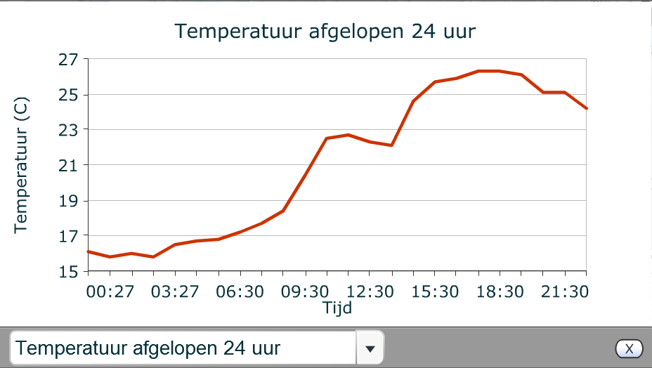 Nog steeds 24,2 graden... max vandaag was 26,6.