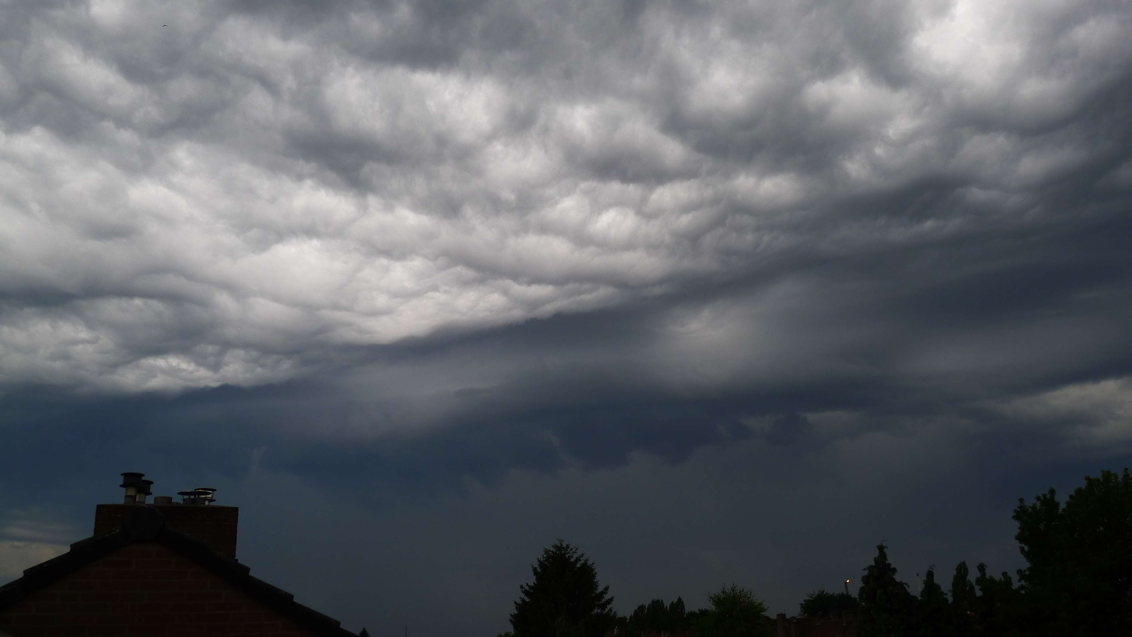 Ondanks dat volgens buienradar de vlaag hier vol over ons ging is hier niks geweest :? In de verte zag het zwart ja maar hier niks wind, niks bliksem of donder en zelfs geen regen eigenlijk. Eventjes zachte regen waarvan de tegels even nat van werden, meer niet. Voor niks voorzorgen genomen dus maar toch liever zo.
