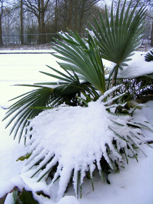 Vanmorgen lag ook hier een redelijk dik laagje wit, nu schijnt de zon volop en de dooi is gestart.