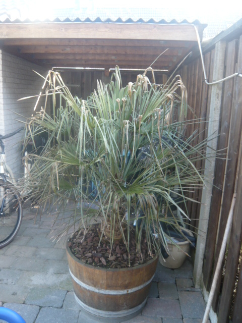 even een update: Ik denk dat mijn cordylines het ook niet hebben gered. Eentjuh daar ben ik zeker van dat deze helemaal kapot is want hij is helemaal zacht in de stam. Die andere is nog niet helemaal zacht en zou zomaar weer eens kunnen uitlopen. Maar ik ben het zelf schuld ik heb de veren opgebonden en hoopte hiermee het palmhart te kunnen isoleren maar daardoor is het vocht overal tussen blijven zitten. De cordyline waait namelijk makkelijk droog en dat was 100 keer beter geweest.