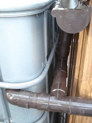 Ik wilde eerst elke goot apart laten toekomen in het vat maar dan bovenstaande operatie ben ik daarop teruggekomen. Een T-tje leek me eenvoudiger