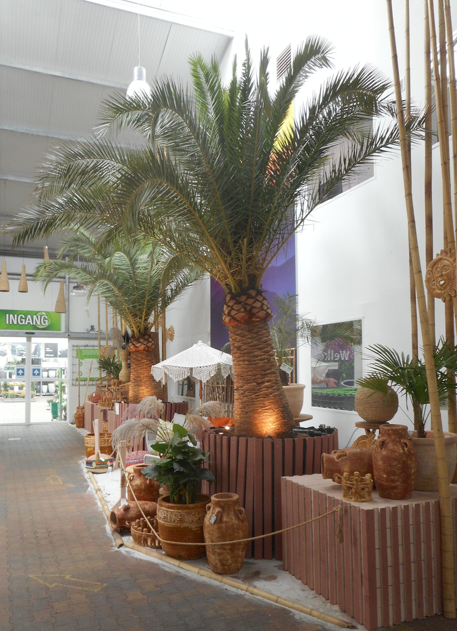 Bij AlmeerPlant zag ik deze knapen. De canariensis moet € 1999 opbrengen. Een mooi duo voor langs de oprijlaan. Levering vermoedelijk niet inbegrepen? De Monstera mag voor € 109,- mee. Mangave € 9.