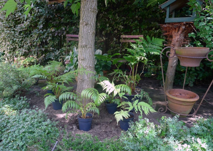 De varens van Eduard, brownii, revolvum, intermedia en nog een cooperi die ik al had, hebben tot de winter hier hun plekje gevonden.