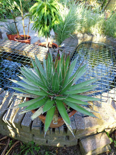 De voorste (kleine) agave op foto 12 is een Agave victoriae-reginae "Compacta".