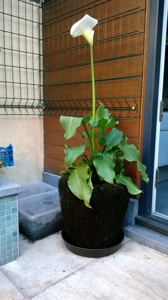 Van de Dicksonia is wel niets verloren gegaan. Van de onderkant heb ik een bloempot gesneden Madagascan style en de rest heb ik verzaagd in plankjes. Wel geen sinecure want binnenin de stam zit een verhout deel zo dik als een telefoonpaal...