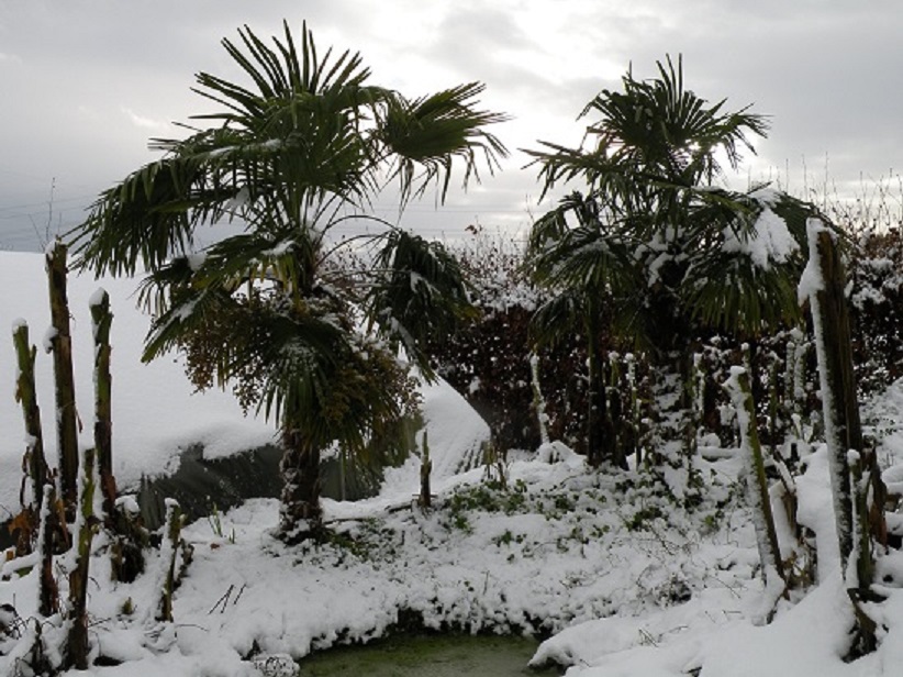 Hier een paar foto's van een gedeelte van mijn palmen en bananen in de sneeuw