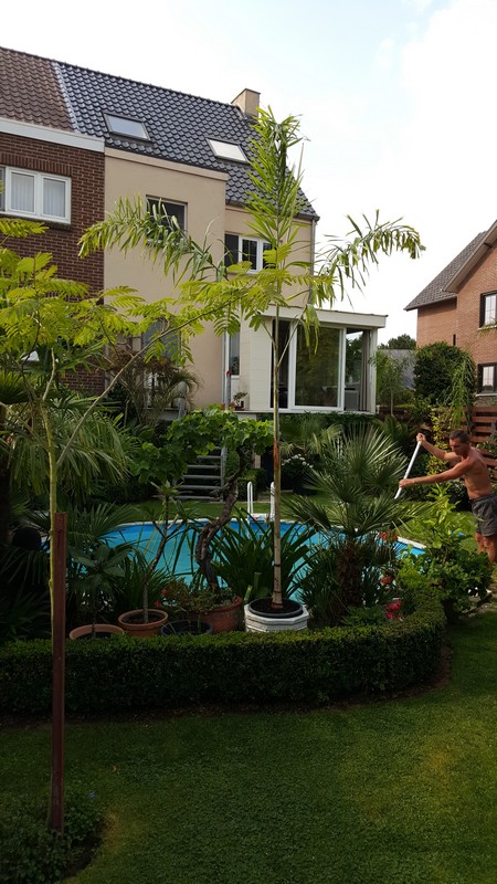 We hebben o.a. Trachycarpus fortunei, Chamaerops humilis, Butia capitata, Butia yatay, Syagrus romanzoffiana, Wodyetia bifurcata, Dypsis decaryi, Phoenix roebelenii, Phoenix canariensis, Washingtonia robusta, Howea forsteriana.