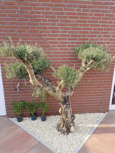 met het vervoeren/plaatsen zijn er helaas veel takken afgebroken, de uiteinden van de takken die nog beneden het glas zaten zijn verbrand en dus hangen ze er slap bij..