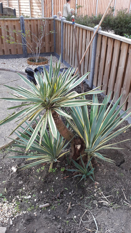 Ik heb/had in mijn voortuin een mooie grote Yucca staan, denk een gloriosa variegata als ik zo op internet kijk. Deze heb ik ooit eens als klein stekje gekregen en die was ondertussen uitgegroeid tot een grote plant met meerdere vertakkingen. Ik vond het altijd een gave plant. Helaas kreeg hij een aantal jaren geleden stamrot in de hoofdstam. Achteraf stond hij in veel te natte grond, wist ook niet echt veel over de verzorging toen. Hij heeft het nog wel lang volgehouden maar met harde wind heeft hij nu toch helaas twee van de drie grote zijtakken verloren.