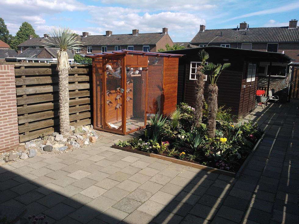 voorlopig even klaar met de tuin qua grote dingen, wil enkel nog wat rotsstrook erbij. de rostrata op toplokatie staat voor het duivenhok altijd in de zon. recent is er vanaf de woning tot aan de schutting een muur gemetseld (die dus ook veel zon krijgt) waarbij ik het idee heb om daar ook door te gaan. voorheen was het idee om de rostrata;s te gebruiken als afbakening van het terras (en bij de ene dus begin van de rotsstrook naar achter), nu verspringt de strook als het ware. rechts vanaf de rostrata naar achteren en links vanaf de woning tot aan de rostrata.