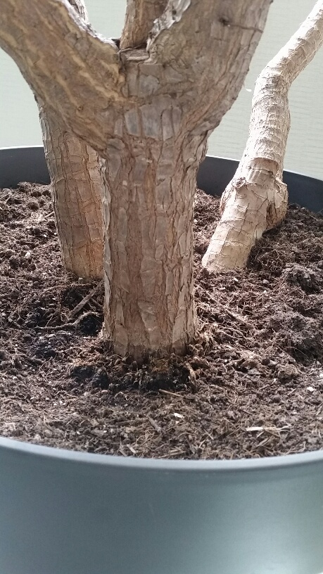 Moet ik dan snoeien waar de lat zich bevindt (zie onderstaande foto)? Waarom zou ik niet onder de vertakking snoeien? Hij staat reeds 3 jaar in dezelfde potgrond. Moet ik de plant eerst verpotten? Veel of weinig water geven?