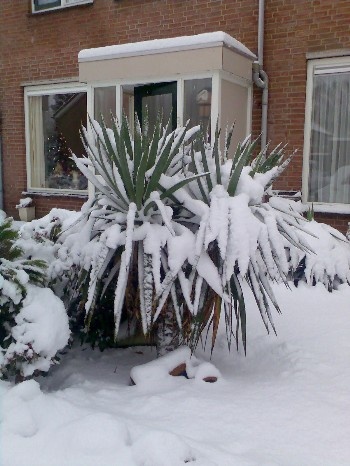 Ik heb ook sinds dit jaar zo'n Yucca's in de tuin staan. De naam ontglipt me even. Ze komen ook net uit de tuin van de buurman :) Hij heeft deze ook altijd onbeschermd in de tuin gezet, en tot nu toe ging dit prima.