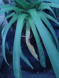 Onderste bladen van Yucca hangen slap en hebben felle kleur geel uiteinden wat op foto niet zo overkomt, wat kan dit zijn. Kern is goed. Vorig jaar geen van deze problemen geweest, overwintert in kas