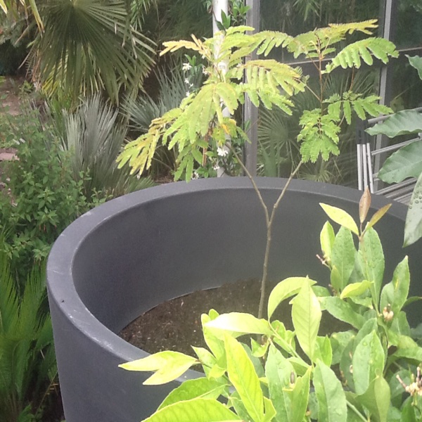 Wat doe je als je tuin vol is en je graag een tweede Albizia aanplant? In de volle grond staat een Evy's pride. Ik wilde graag nog de in Kroatiƫ gekochte julibrissin planten. Dus besloten deze in een mega pot te planten. Deze pot is groot genoeg lijkt mij?