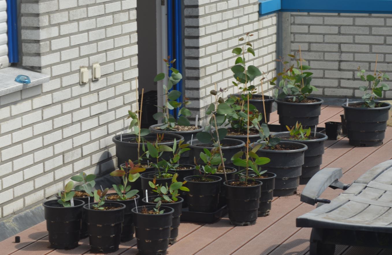 Enkele foto's van onze Eucalyptus zaailingen: Eucalyptus camaldulensis, Eucalyptus botryoides, Eucalyptus cinerea, Eucalyptus globulus ssp globulus, Eucalyptus globulus ssp bicostata, Eucalyptus grandis en Eucalyptus tereticornis.