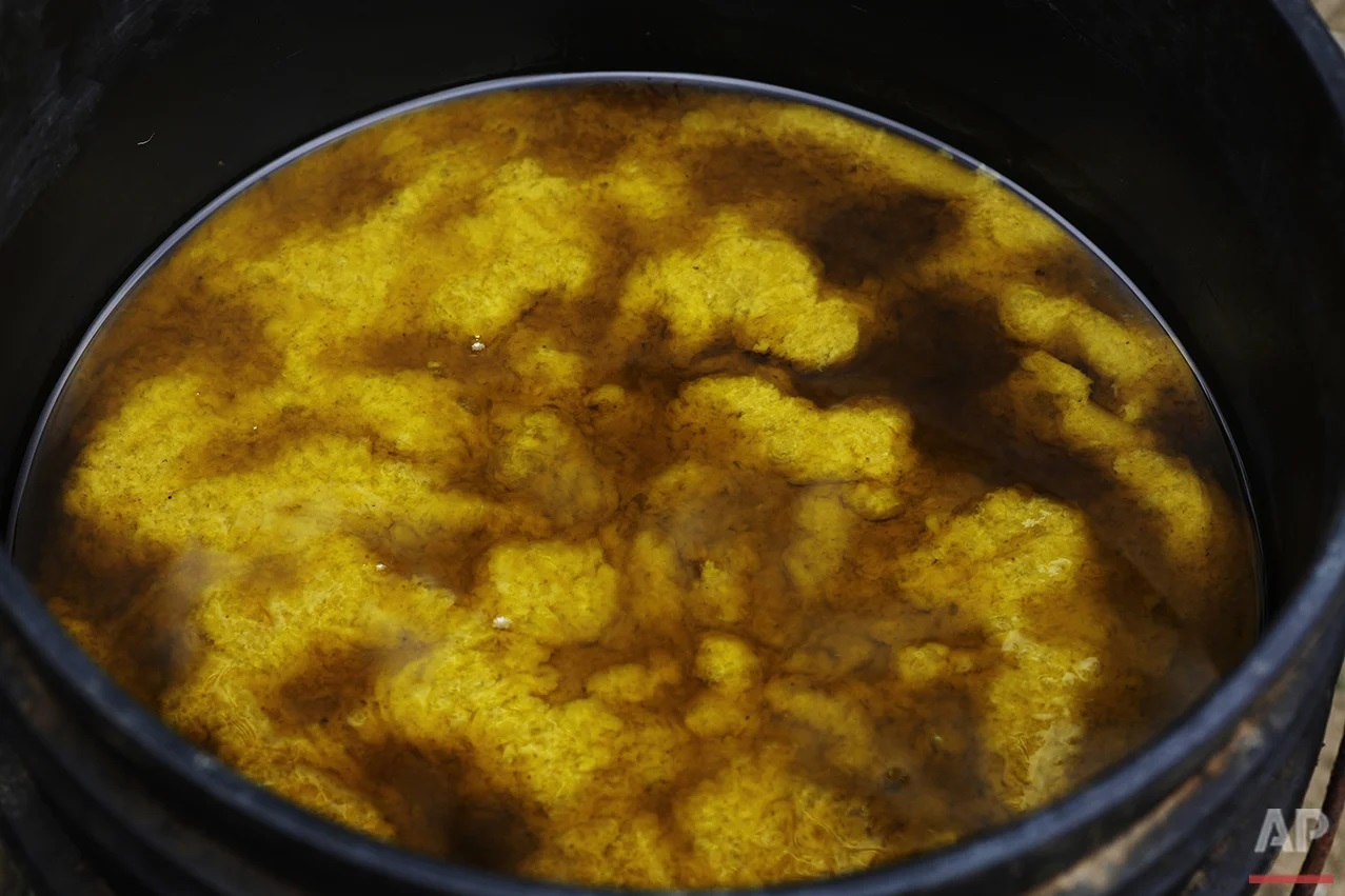De pasta wordt uitgeperst en de kerosine met de daar in opgeloste cocaïne komt vrij. De bladeren worden weg gegooid.