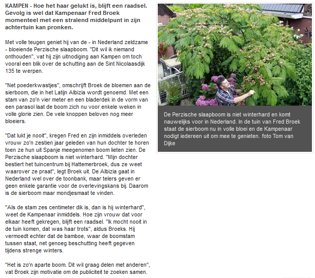 Albizia artikel in de krant