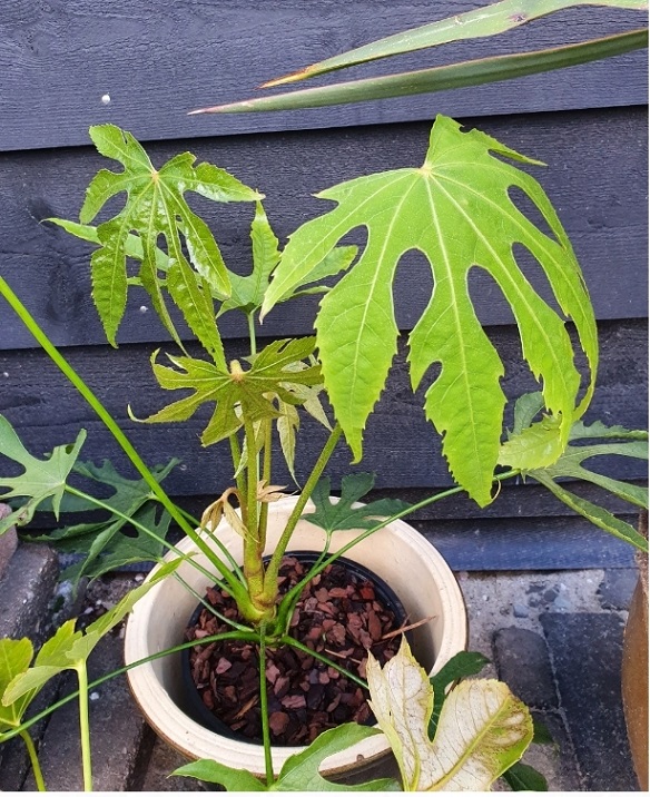 Leuk plantje/ struikje, Fatsia polycarpa (var. Green fingers )