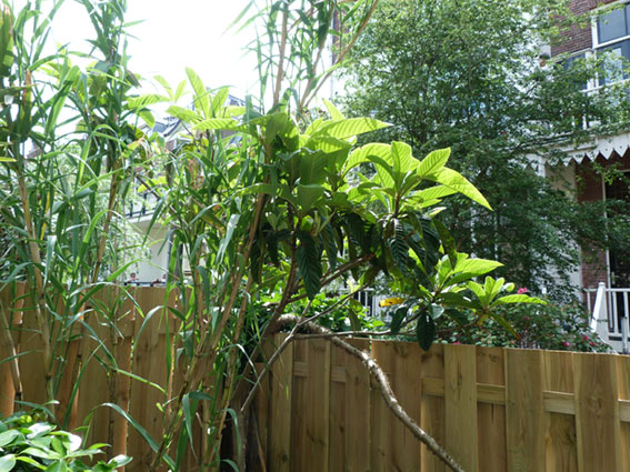 Vanavond eens op die Eriobotrya japonica gelet en lijkt 1m zeker breder te zijn nu en ook wel ergens tussen de 50-100cm hoger.