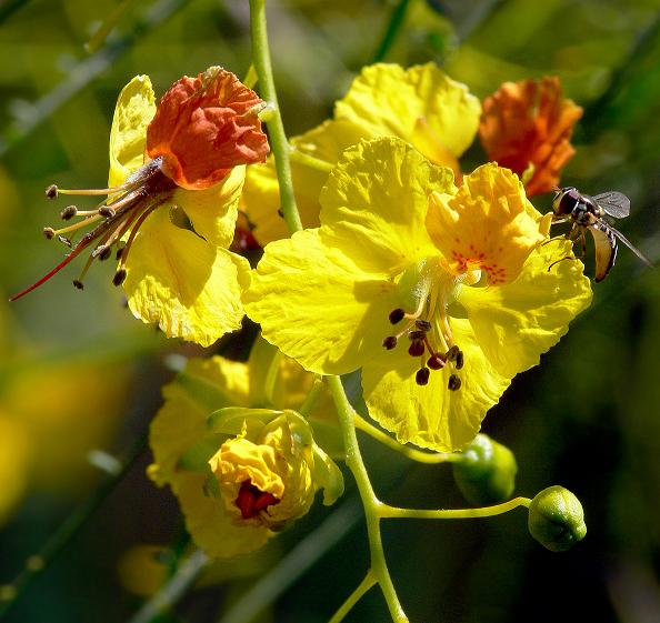 Het is de Parkinsonia aculeata, een grote heester/kleine boom afkomstig uit het Zuidwesten van de Verenigde Staten(West-Texas, Zuid-Arizona), Mexico en de Caraïben. Hij bloeit zeer uitbundig met oranjegele welgeurende bloemetjes. Ook zijn blaadjes en takken vind ik zeer mooi van structuur. Hij kan veel droogte hebben en zou winterhard zijn tot -10/-12°C.