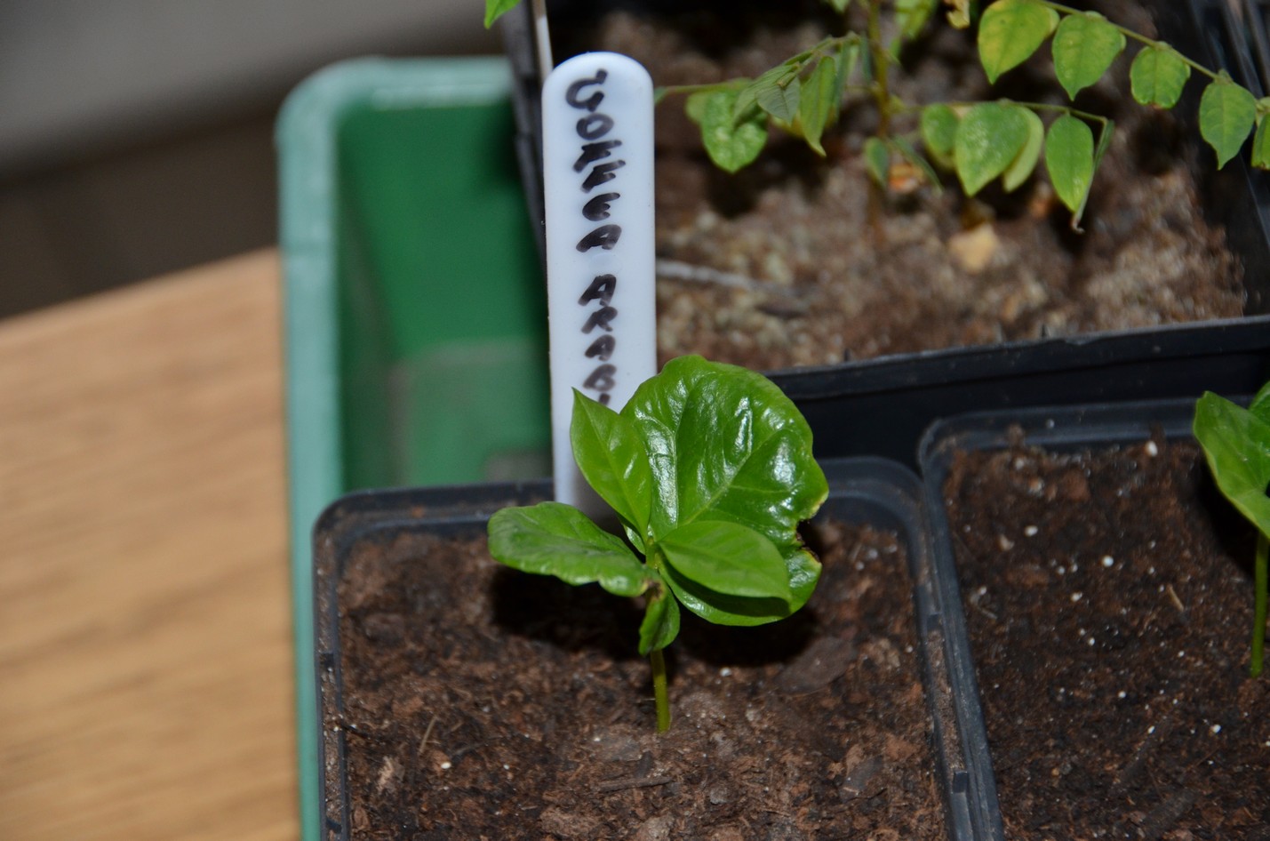 Helaas niet op gekomen waar ik vermoed te warm, te vochtig en verkeerde bodemstructuur. Misschien opnieuw bestellen en zaaien. Coffea staat hoog op mijn lijstje.