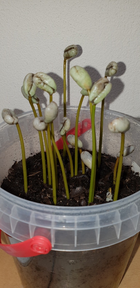 1e batch, Voortgang na 3 weken bijgewerkt, gevoelsmatig gebeurd er weinig, deze week zouden de bonen moeten opengaan, wordt vervolgd.