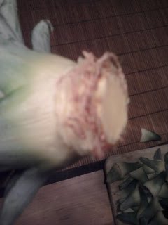 vruchtvlees eraf gesneden, dan ben ik de blaadjes eraf beginnen trekken tot ik allemaal bruine wortels tegenkwam. en dan heb ik ze in water gezet, boven de verwarming zodat het warme voetjes krijgt. :)