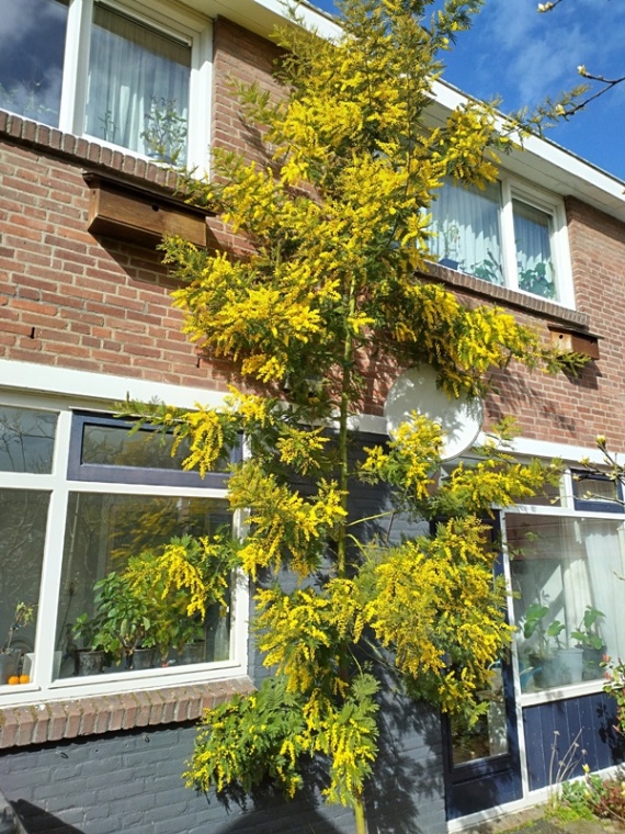 Ondanks dat de vorst er een paar keer overheen is gegaan heeft de boom totaal geen schade en zelfs volop gebloeid misschien geluk gehad wie zal het zeggen.
