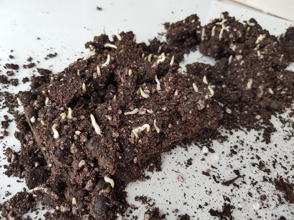 Kleine update. Een aantal Filibusta's zijn al aan het kiemen. Ik was echter nieuwsgierig om te zien of dit er meer waren en heb zitten wroeten. Hierbij zijn van twee de kiemwortels beschadigd geraakt. Dom ik weet het. Kans dat ze het nog redden? (Stukje afgebroken van de wortels).