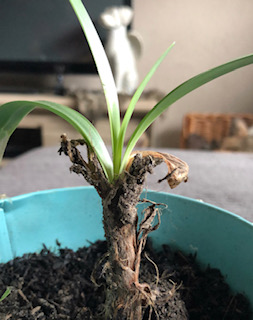 Na een paar dagen lag er opeens een klein plantje naast de palmboom en we hebben