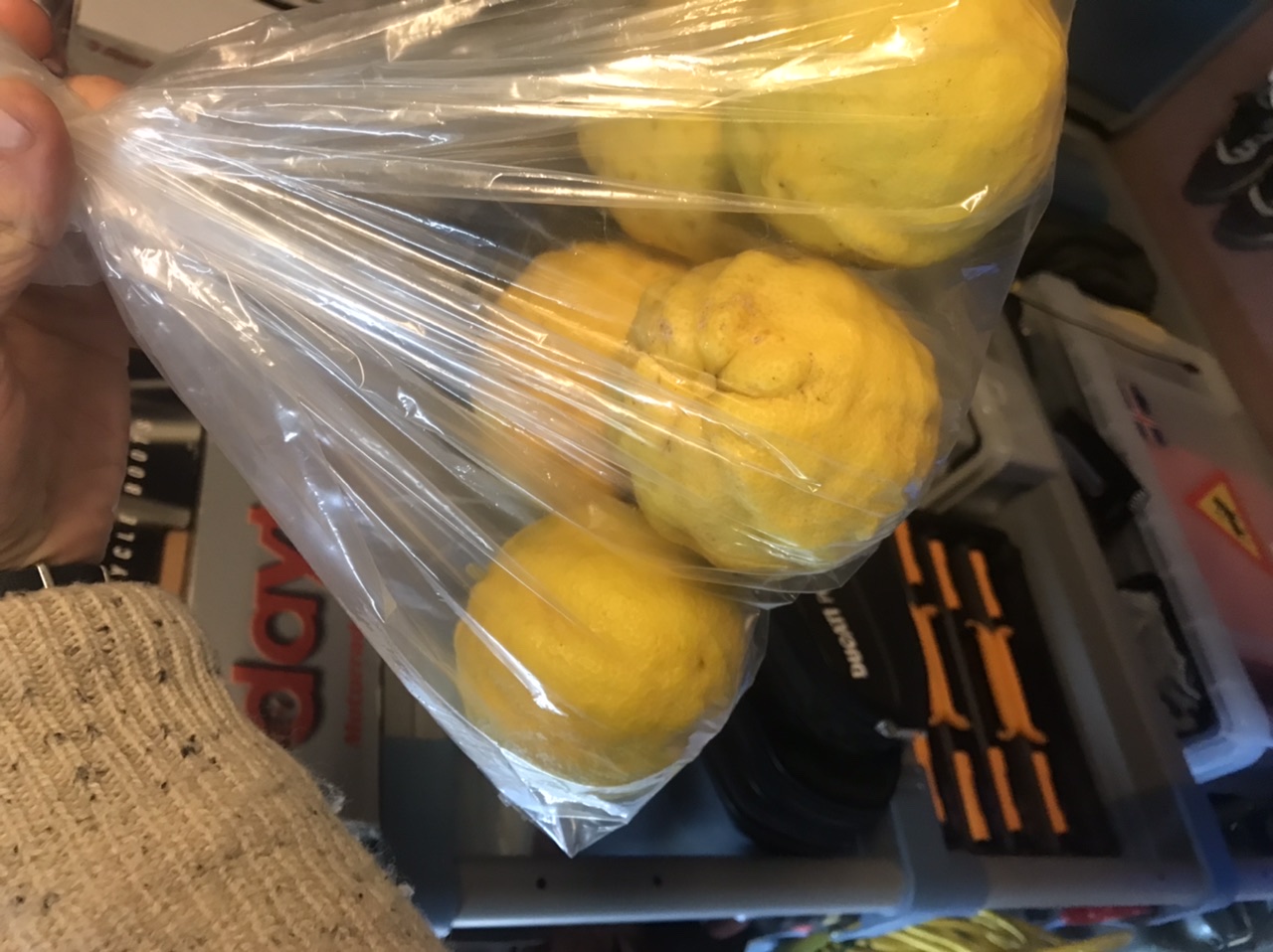 Het is al een tijdje geleden dat ik op dit forum actief geweest ben, maar misschien nog niet te laat voor leuke bevindingen via dit medium mee te delen… Sinds 2017 ben ik de trotse eigenaar van een Citrumelo “Swingle” (Citrus trifoliata X Citrus x paradisi) die ik indertijd bij Flora Toskana heb aangekocht. Na enkele jaren goed doorgegroeid te hebben en een paar korte koudeperioden doorstaan te hebben tijdens afgelopen winters, heb ik dit jaar eindelijk mijn eerste oogst binnen (15-tal vruchten). De soort doet het hier uitstekend, is een sterke groeier en is aangezien zijn beperkte grootte en leeftijd verrassend productief in mijn opinie. De foto’s spreken al dan niet voor zich, vond het alleszins een leuk idee om mijn bevindingen met jullie te delen. De vruchten smaken licht zuur en zoet in het begin, met een bittere nasmaak. Niet ideaal vind ik om rauw te eten, maar uitstekend om er marmelade mee te maken of als toevoeging bij spuitwater en gin-tonic. Kortom, zeker en vast een aanrader!