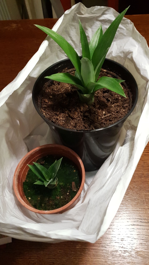 de kruin/moederplant heeft inmiddels ook al weer 4 nieuwe stekken gegeven maar zoals reeds een paar vrienden hier al aangaven, een bromelia soort is een plant waar je van moet houden . Lange bladeren met een eind stekel waar je U tegen zegt. Prachtig solitaire plant met toefje op de taart waar je ruim 2 jaar op moet wachten. Zoals reeds vele experimenten uitproberen en na suc6 stokje overdragen ivm te weinig ruimte, ;)