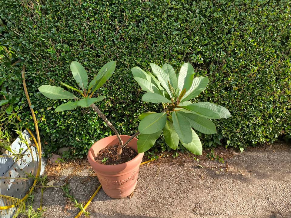 Tevens nog een Jacaranda boompje 180cm, voor 25 euro en en Plumeria inclusief pot voor 40 euro