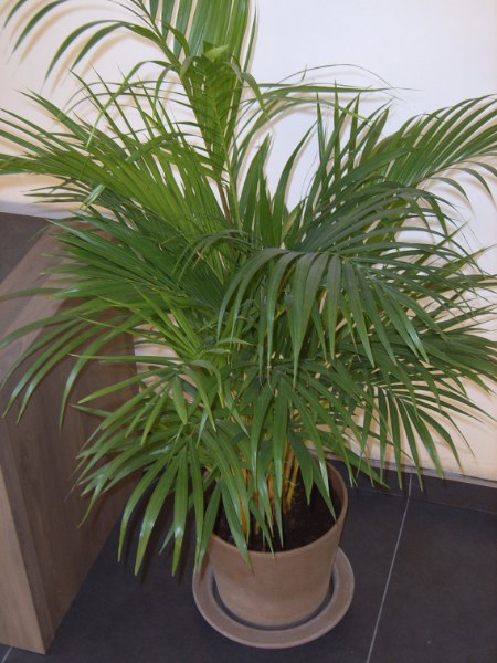 De andere plant is een Areca. Deze is veel gemakkelijker in de verzorging en vind je dan ook regelmatig terug in showrooms, winkels e.d.