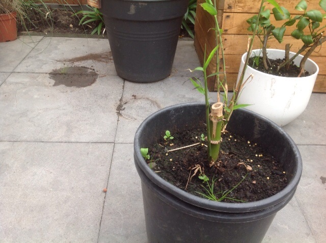 Eric en Etienne, bedankt voor jullie reacties! De moeder plant is lastig, want ik heb de bamboeplant naast deze bamboeplant (phyllostachys Nigra) meegenomen en de rest van de bamboesoorten werd ook gerooid. Maar ik ga hem denk gewoon uitplanten, had niet verwacht dat hij het zou doen met zo weinig wortels, ben benieuwd.